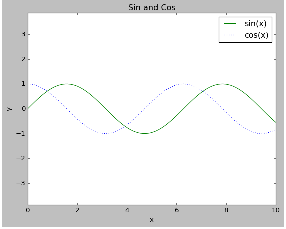 plt.title('Sin and Cos')                              # 표 전체에 대한 라벨
