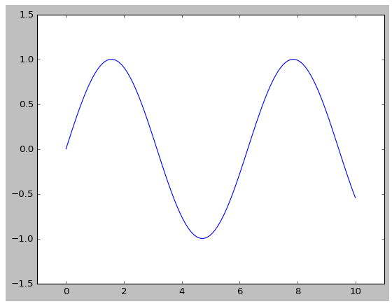 plt.axis([-1,11,-1.5,1.5])                   # x,y에 해당되는 축을 리스트 안에 표현